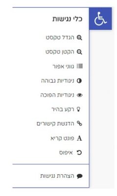 בלחיצה על הכפתור ייפתח תפריט נגישות עם כלי עזר שונים: